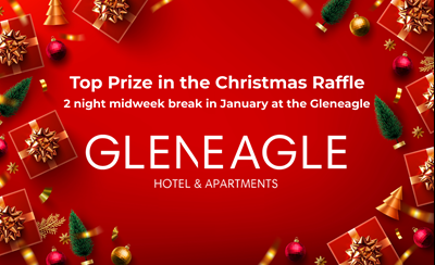 Enter our Christmas raffle for a chance to win a 2-night stay in the Gleneagle Hotel in Killarney or cash prizes!